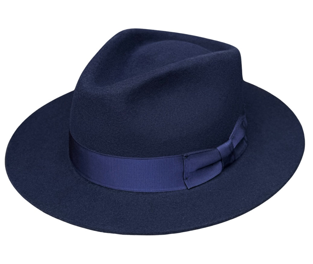 The Florence by Magill is a fedora style hat, made of premium 100% Rabbit fur felt fur felt. It features a classic pinch front teardrop crown and a 2 1/2” Brim. Inside has a premium leather sweatband and a satin lining.