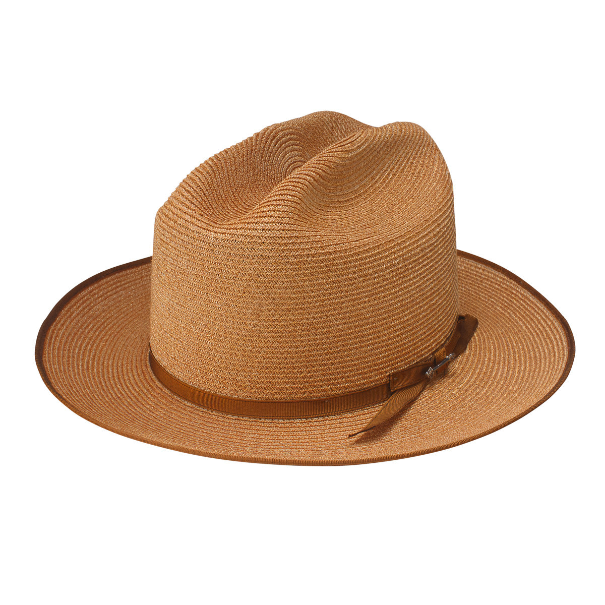 The Hemp Open Road Fedora by Stetson is constructed of firm finish hemp straw and features a high crown, contrast trim brim edge, sheepskin interior sweatband and grosgrain hat band. Hemp Straw. Made in USA.